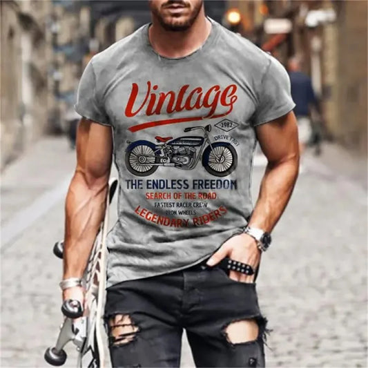 VOODOO CYCLE HOUSE Men's Women's Spring Summer Large Short-sleeved Cotton T-shirt Rock American Retro Harley Motorcycle Print Loose Top